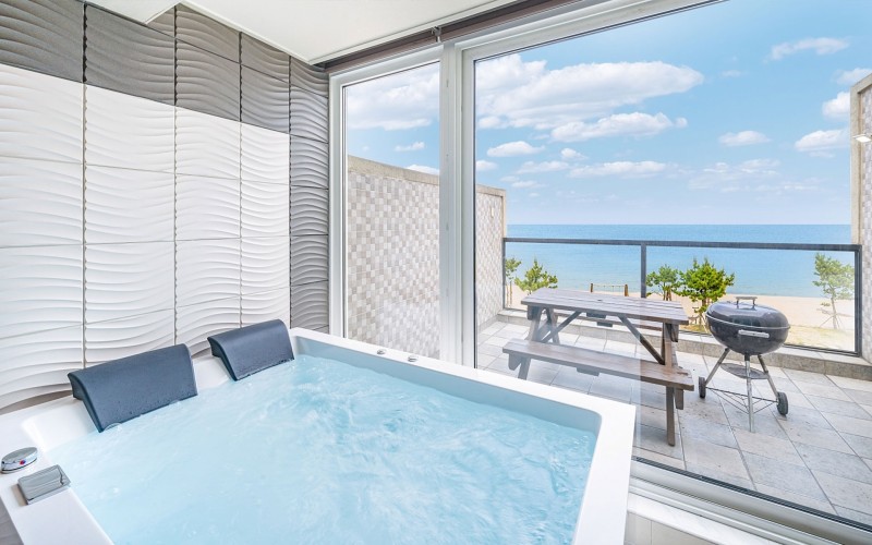 스파/월풀 바다전망 복층구조 개별바베큐 와이파이 커피숍 해수욕장인근 욕조 주차가능